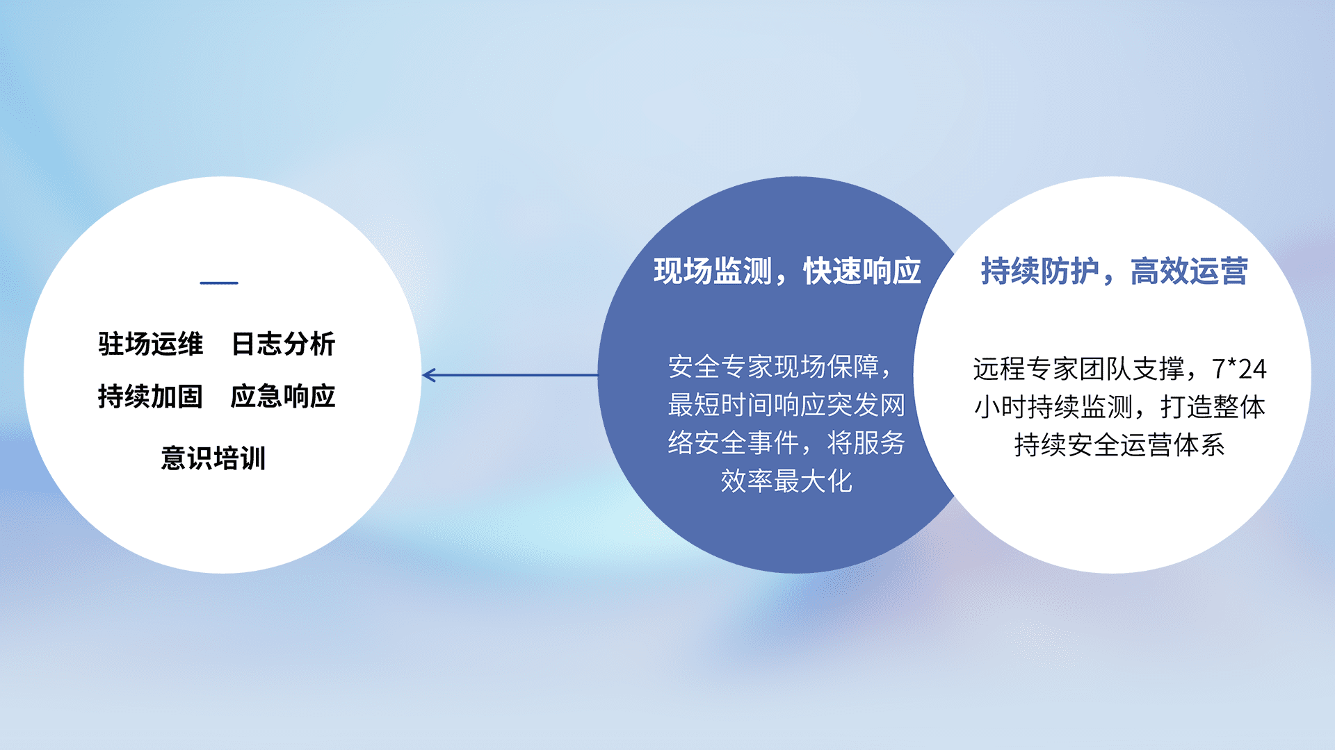 7X24小时持续监测安全事件,保持安全策略有效性,降低资产脆弱性风险,,精准拦截黑客攻击,,减少被黑客利用的机会,,第一时间遏制,,,降低损失。。。
